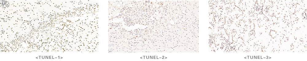 3、滴加Tunel檢測(cè)液時(shí),可利用防蒸發(fā)膜防止其蒸發(fā)影響樣本的生物素標(biāo)記;配制好的DAB顯色液必須一次性使用完畢,不宜凍存。